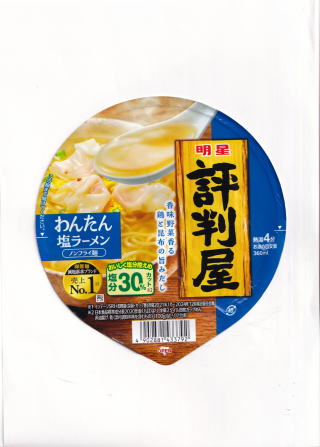 ![]() 明星 評判屋 わんたん塩ラーメン 67g(めん55g) 99円(ドン・キホーテ) |