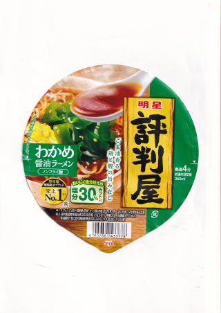 ![]() 明星 評判屋 わかめ醤油ラーメン 65g(めん55g) 99円(ドン・キホーテ) |