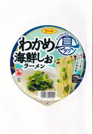 ![]() GUDAKU 具ダク わかめ海鮮しおラーメン 73g(めん60g) 99円(ドン・キホーテ) |